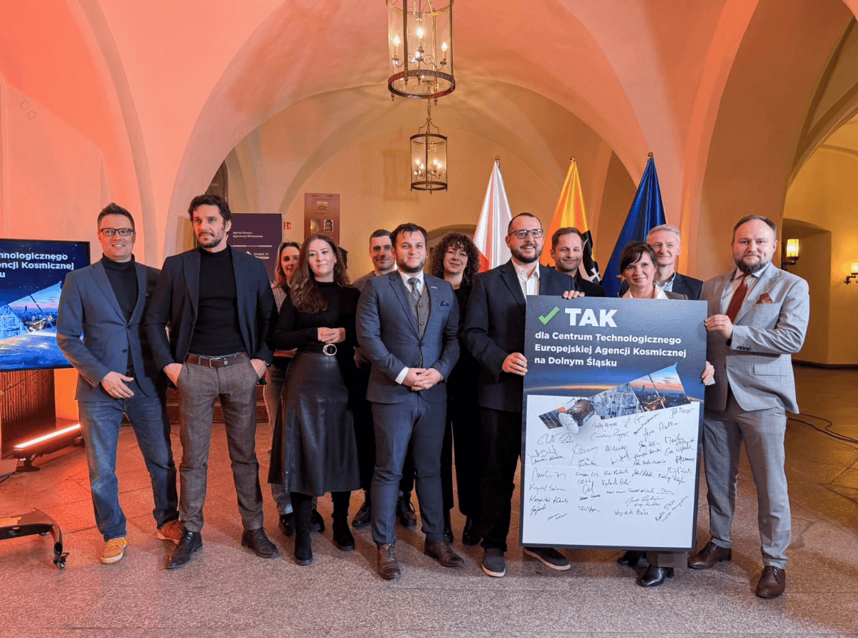 On Wednesday, January 14, representatives of all the forces supporting the location of the Center in Wrocław gathered at the Town Hall and signed a letter that will be sent to Prime Minister Donald Tusk and the European Space Agency. This support for locating the center in Wrocław is conveyed by the provincial governor, marshal, authorities of Wrocław, Wałbrzych, Jelenia Góra, and Legnica, and even Dresden and Prague, representatives of universities in Wrocław and Opole, as well as entrepreneurs associated with the space industry.