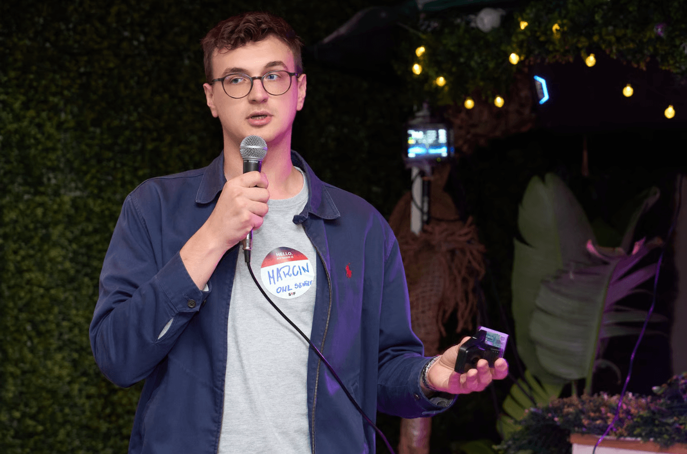 One of the pitchers at Founders Night was Marcin Matuszewski, co-founder and CPO of Owl Sentry. The company is based in Wrocław, but its representatives flew in to Founders Night straight from Silicon Valley in San Francisco.